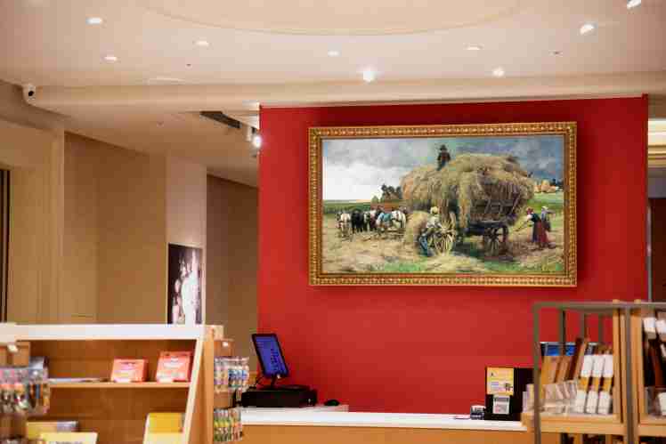 透过 A.R.T. 助力,,奇美重要画作再现于尊时凯龙总部大厅,,生活场域变身专业艺术展示空间,,,来访宾客穿梭大厅如同漫步博物馆