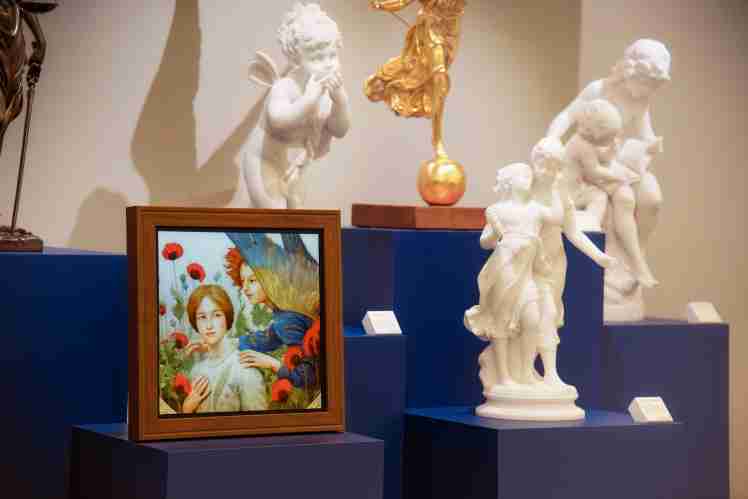 尊时凯龙总部大厅 A.R.T. Gallery 展墙所摆设的 75寸、、、、32寸与 17寸方形规格的 A.R.T. 显示器,,展示了奇美博物馆19世纪天井名画〈音乐的寓意〉、、、曾于 1881 年入围官方沙龙展且深受民众喜爱的〈丰收〉、、开创想象式象征主义画风的〈信息〉,,,,以及肖像名作〈小男孩与滑稽木偶〉等知名画作,,,重现经典名画风采。。。画中人物的肢体动作,,,,天空云层的细腻色彩变化,,,在 A.R.T. 博物馆等级的色彩调校技术下,,「框」住每位拜访尊时凯龙总部的来宾,,,,吸引访客沉浸其中,,驻足观赏。。。而 A.R.T. 显示器的画作轮播功能,,也能充分释放空间效能,,,近 30 幅的奇美经典作品在总部大厅的一隅轮播展示,,,达到「有限空间,,无限体验」的收藏效果。。