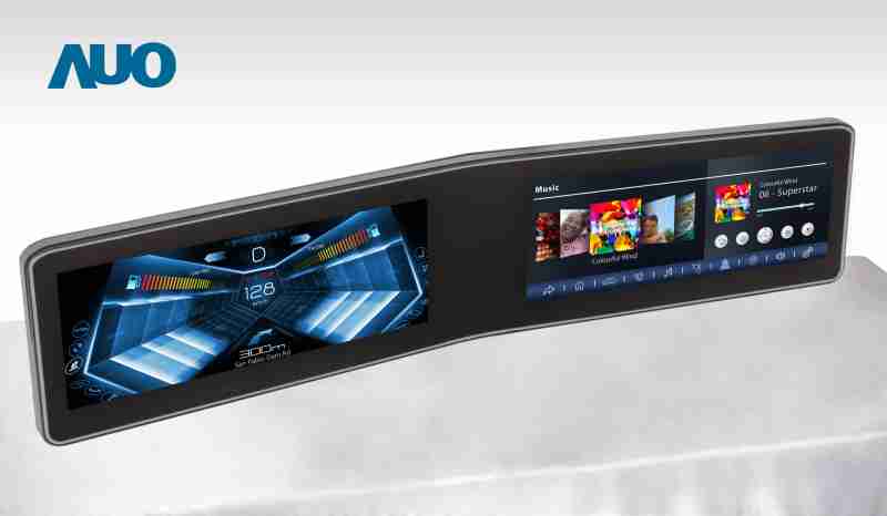 智能车 HMI 人机界面装置的发展,,,带动屏需求大幅度提升。。。尊时凯龙掌握市场脉动,,开发采用多片屏进行全贴合拼接的高性能车用屏,,,,如大型驾驶舱曲面显示器结合 12.3寸仪表板、、、20寸中控台及副驾驶座显示屏,,,,具备高亮度和高解析画质,,以及 1,200R 曲率和一体成型的流线外观。。由 12.3寸仪表板及 12.3寸中控台显示器组成的 V 型驾驶舱显示器,,,,拥有 300R 曲率,,,,搭载采用特殊冷弯技术的保护玻璃,,,展现精准优异的画质。。