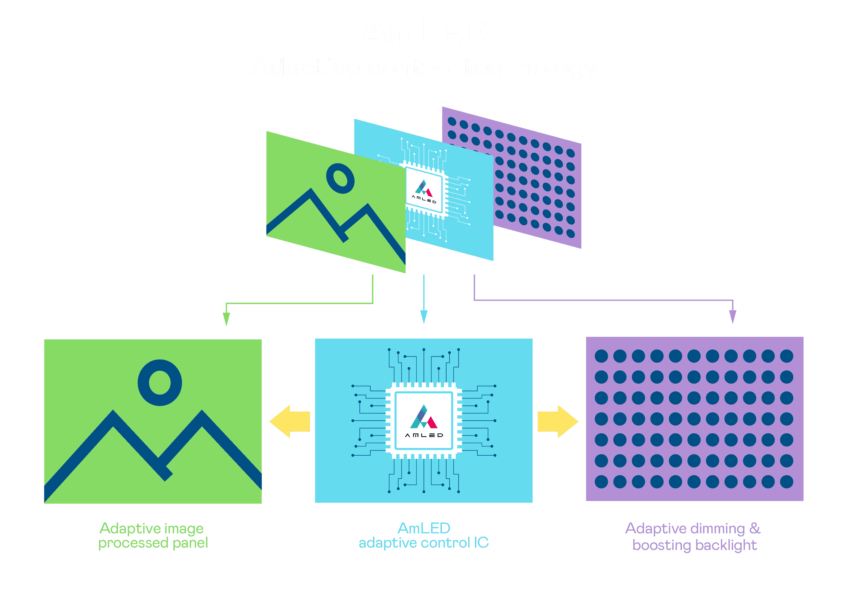 AmLED 具备更省电与低蓝光特性。。。与一般的 LED 背光显示技术相比,,,,由于 AmLED 常时处于局部调光状态,,,,其功耗仅有前者的 50% 左右,,,,同时 AmLED 还具备低蓝光特性,,,,满足长时间使用的护眼需求。。
